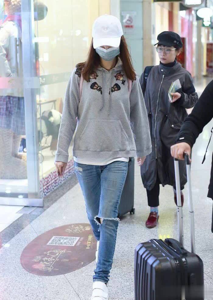 看林心如穿卫衣,悟了:不配阔腿裤皮鞋,配牛仔裤更时髦